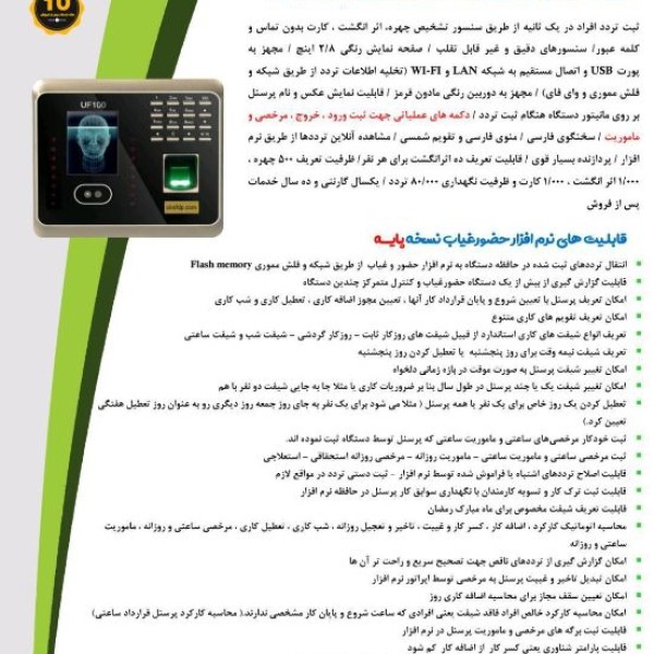 دستگاه حضور غیاب تشخیص چهره و اثر انگشت uf100-wifi