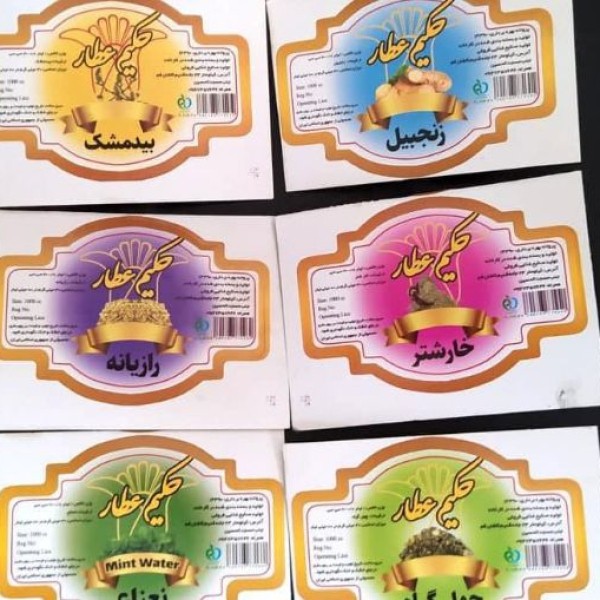 طراحی و چاپ لیبل برچسب برای ظرف گلاب و عرقیجات، شیرینی، قطاب، شوینده و ...