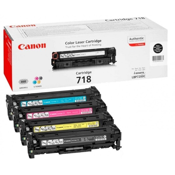 ست کارتریج لیزری کانن مدل 718 چهار رنگ، با پرینترهای  MF 8350 ، LBP-7200 ، LBP-7660 ، MF 8330 و MF 8380 سازگار است و کیفیت چاپ بالایی تحویل می دهد. این کارتریج لیزری دارای 3500 برگی برای چاپهای سیاه سفید و 2800 برگی برای چاپهای سیاه سفید است و ست کارتریج مقرون بصرفه ای به حساب می آید.